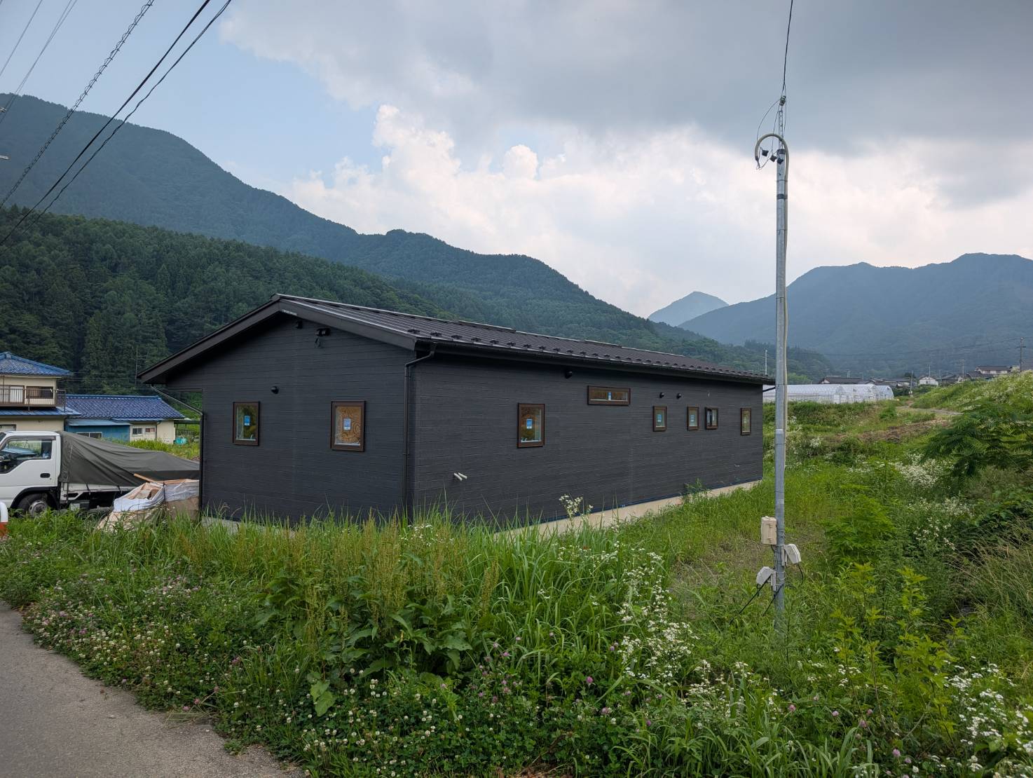 青木村T様邸の注文平屋住宅の足場が取れて美しい外観が姿を現しました。 自然と調和する外観と設計になります。