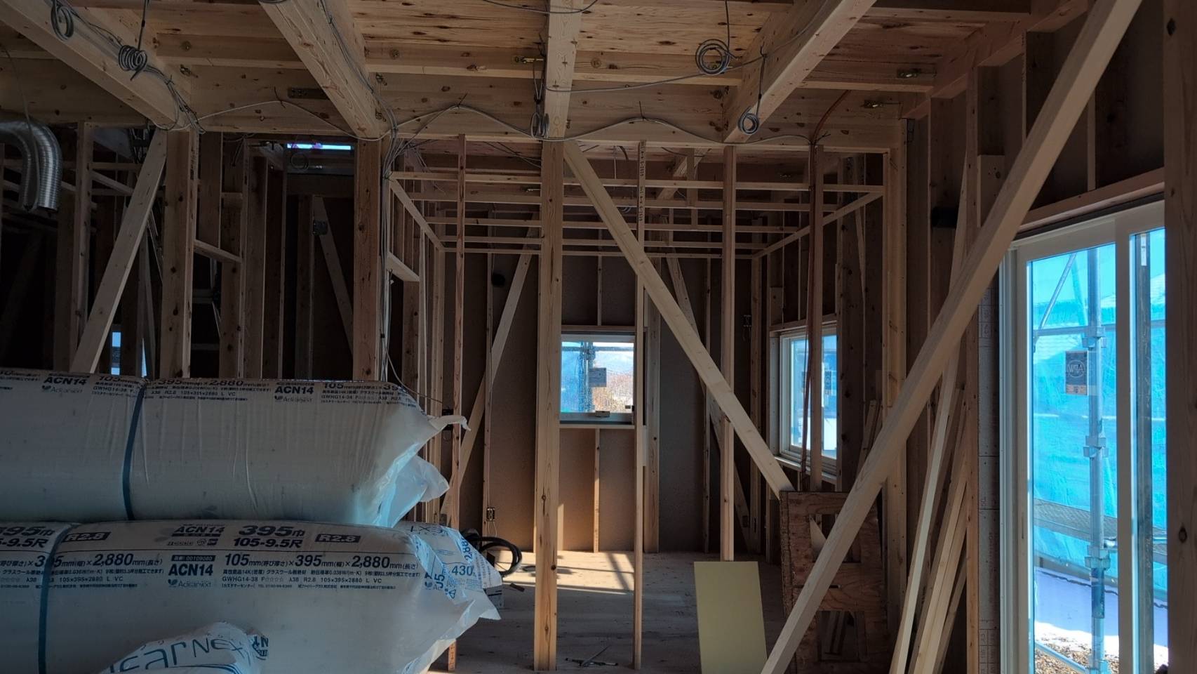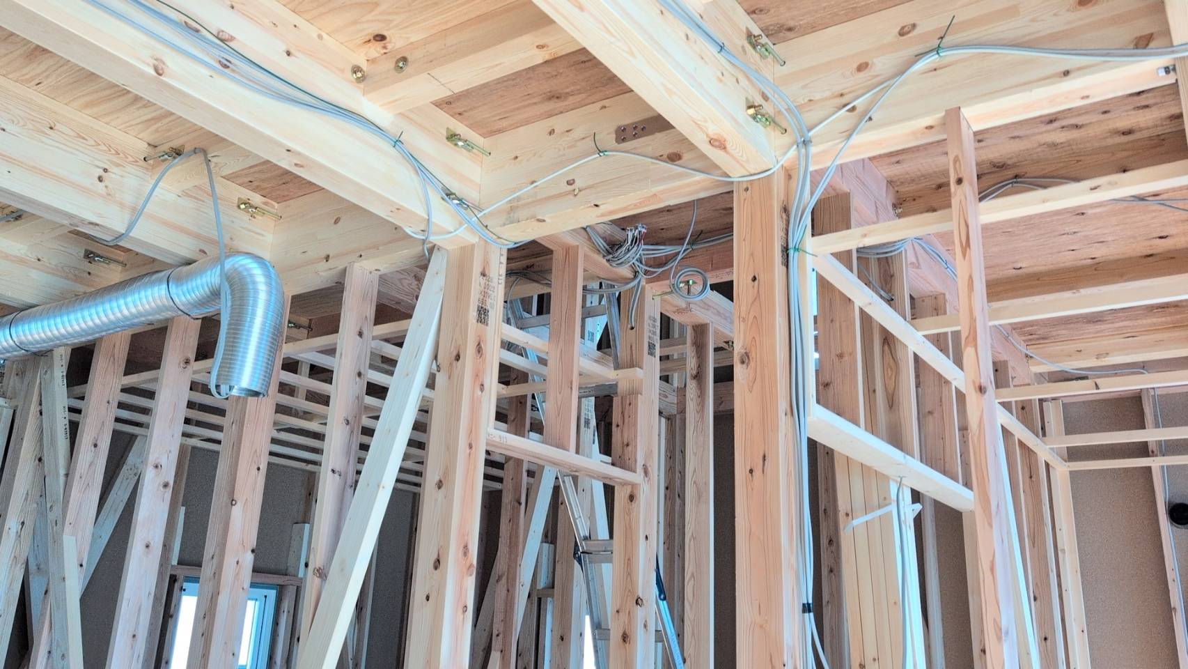 この段階では壁や天井の仕上げ材はまだ施工されていませんが、だからこそ見えない部分へのこだわりや丁寧な施工が伝わります。